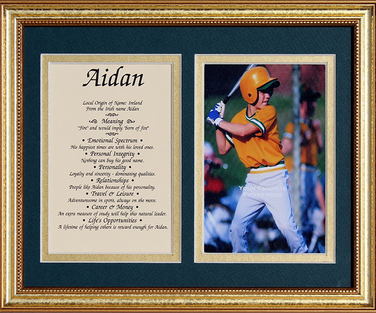 Personalized First Name & Meaning Print This beautiful, green over gold matted print includes a profile of the meaning of any first name (origin, personality traits, and more.) Add a favorite 4 x 6" photograph to create a cherished keepsake.Gold frame Measures 8 x 10". USA. Please state name. Shipped separately; allow 1-2 weeks.