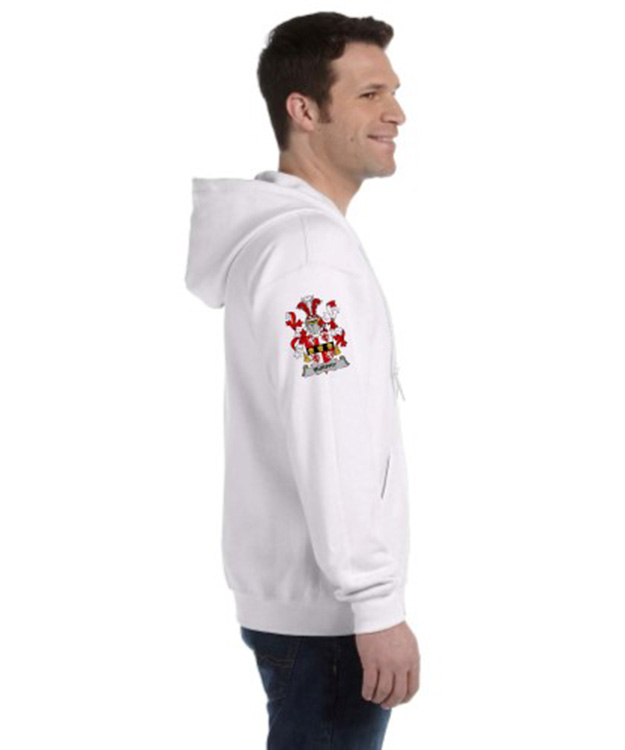 Our Coat of Arms Full-Zip Hooded Sweatshirt is printed with a historical full-color coat of arms. Available in ash grey. Please specify last name. 100% cotton. Sizes: S (34-36), M (38-40), L (42-44), XL (46-48). Shipped separately - please allow 2-4 weeks for delivery.