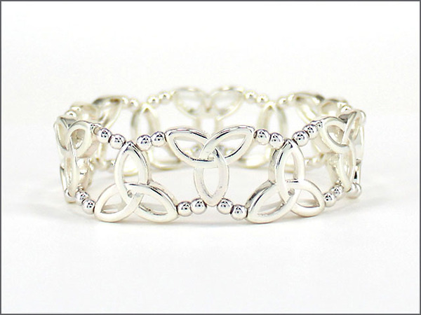 Small Trinity Knot Bracelet – Delicate beads and Trinity knots stretches from 7” to 7 ½ inches and is 3/4 “ wide.