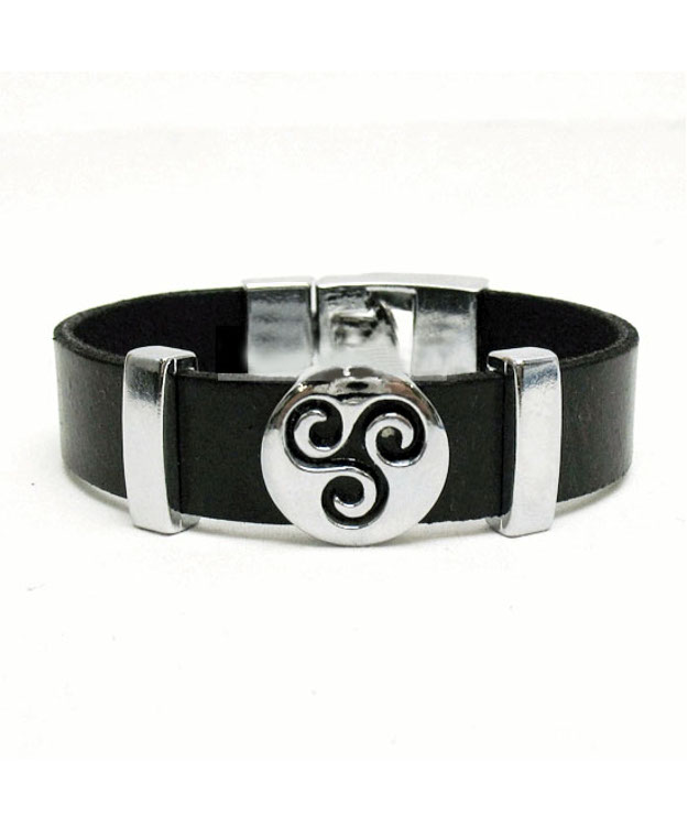 Black leather triskele bracelet.