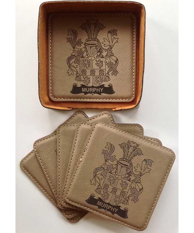Personalized Coat-of-Arms Almost all families of European descent have coats of arms, some dating from as far back as the 12th century. Impress your guests with coasters bearing the earliest coat of arms associated with your name. Made of waterproof faux leather, each coaster is laser engraved.