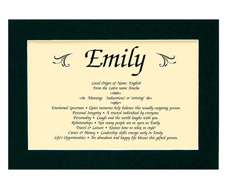 Personalized First Name & Meaning Print. This beautiful, green matted print includes a profile of the meaning of any first name (origin, personality traits, and more.) Measures 5 x 7. USA. Please state name. Shipped separately; allow 1-2 weeks.