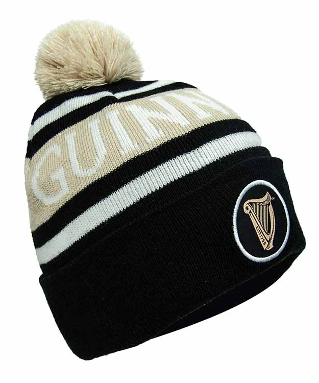 The Guinness Black and White premium beanie is a stylish hat to add to your collection. This modern design features the official Harp Logo embroidered at the front along with “Guinness” Print across the middle of the beanie. This beanie has a turned-up brim and pop-pom top which gives it a distinct look. This beanie is the perfect accessory to keep warm and be trendy this winter.