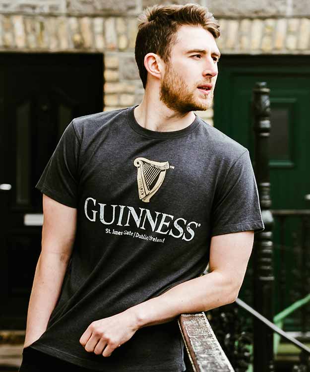 Guinness Navy Distressed Harp Logo is made with a Polyester Cotton Mix, this Navy Short Sleeve Guinness® Distressed Tee is a traditional t-shirt featuring the Classic Guinness Harp and Official Merchandise Logo on the front. With soft-to-the-touch fabric, a short sleeve, and a classic comfortable fit, this tee is ideal for everyday wear.