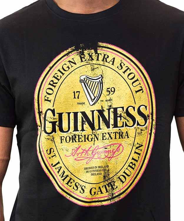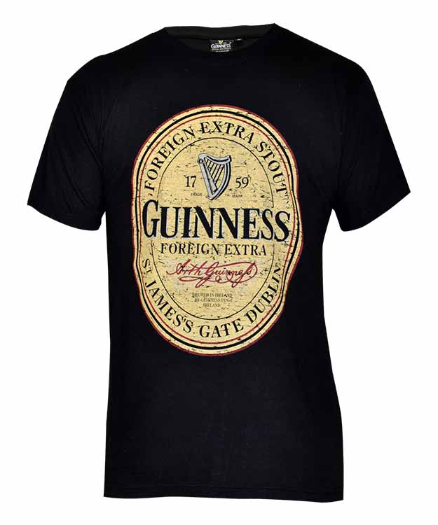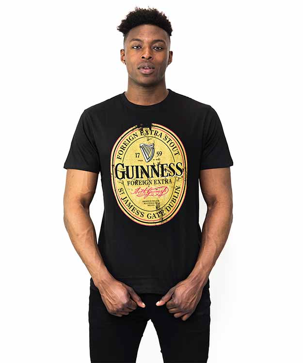 The Guinness® Distressed English Label T-Shirt is made from 100% cotton featuring a screen printed Guinness® Foreign Extra Stout label on the front in a distressed style. The crew neckline, short sleeves and comfortable fit make this tee perfect for everyday wear.