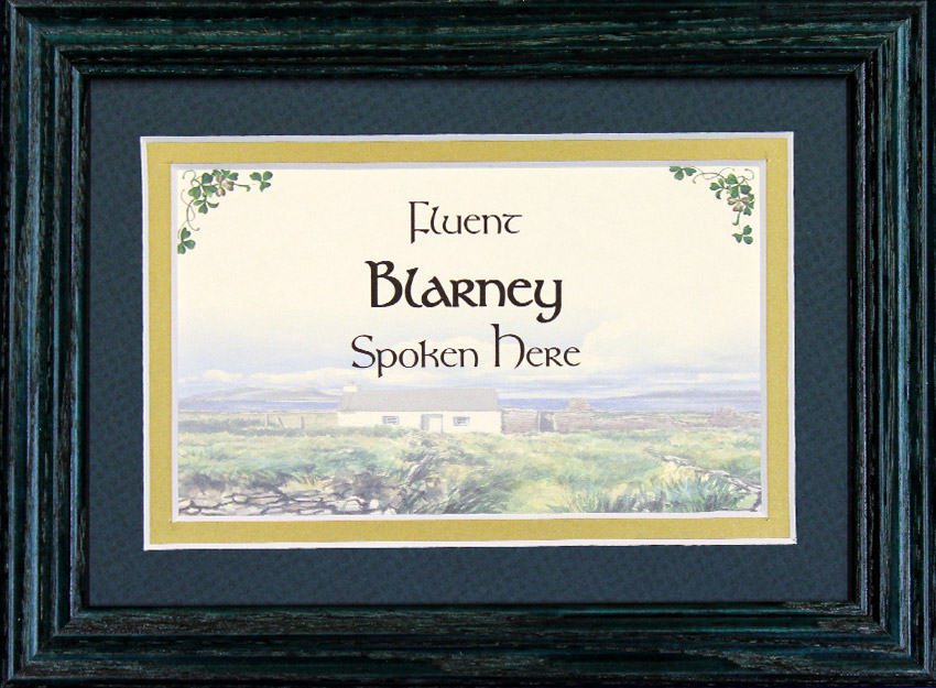 Our whimsical Irish blessings come double matted under glass in a dark wooden green frame with easel and hanger attached. Size 5 inches high x 7 inches wide