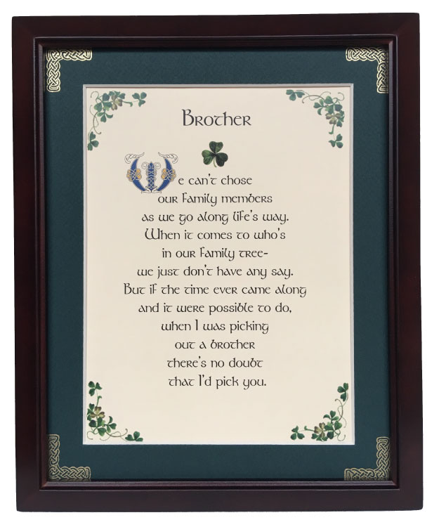 We can’t choose our Family members As we go along life’s way. When it comes to who’s in our family tree- We just don’t have any say. But if the time ever came along And it were possible to do, When I was picking out a brother There’s no doubt that I’d choose You!