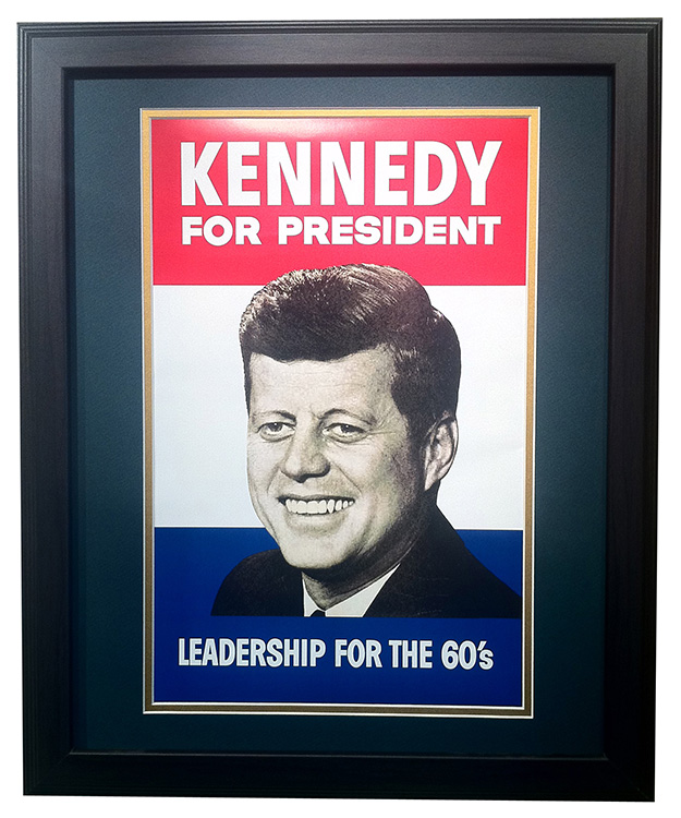 "Kennedy for President - Leadership for the 60's". John F. Kennedy was the 35th President of the United States and the first Irish Catholic to serve as President. 16" x 20". Printed in the USA. Shipped separately - please allow 2-4 weeks for delivery.