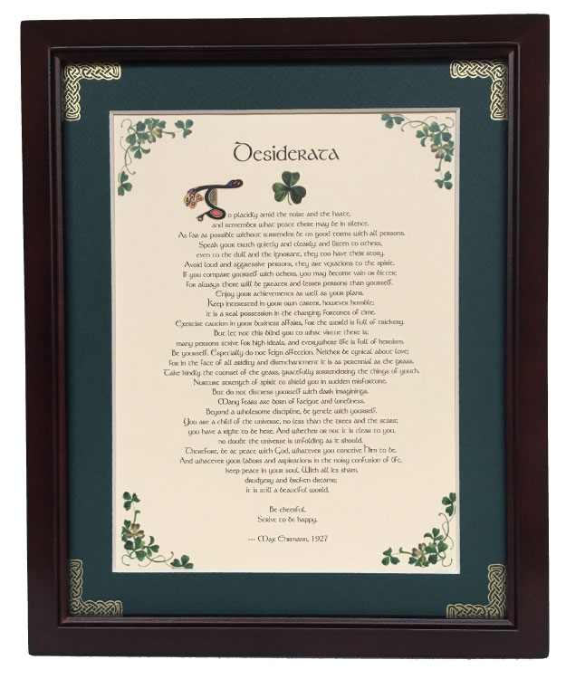Go placidly amid the noise and the haste, and remember what peace there may be in silence. As far as possible without surrender be on good terms with all persons. Speak your truth quietly and clearly; and listen to others, even to the dull and the ignorant, they too have their story. Avoid loud and aggressive persons, they are vexations to the spirit. If you compare yourself with others, you may become vain or bitter; for always there will be greater and lesser persons than yourself. Enjoy your achievements as well as your plans. Keep interested in your own career, however humble; it is a real possession in the changing fortunes of time. Exercise caution in your business affairs, for the world is full of trickery. But let not this blind you to what virtue there is; many persons strive for high ideals, and everywhere life is full of heroism. Be yourself. Especially do not feign affection. Neither be cynical about love; for in the face of all aridity and disenchantment it is as perennial as the grass. Take kindly the counsel of the years, gracefully surrendering the things of youth. Nurture strength of spirit to shield you in sudden misfortune. But do not distress yourself with dark imaginings. Many fears are born of fatigue and loneliness. Beyond a wholesome discipline, be gentle with yourself. You are a child of the universe, no less than the trees and the stars; you have a right to be here. And whether or not it is clear to you, no doubt the universe is unfolding as it should. Therefore, be at peace with God, whatever you conceive Him to be. And whatever your labors and aspirations in the noisy confusion of life, keep peace in your soul. With all its sham, drudgery and broken dreams; it is still a beautiful world.