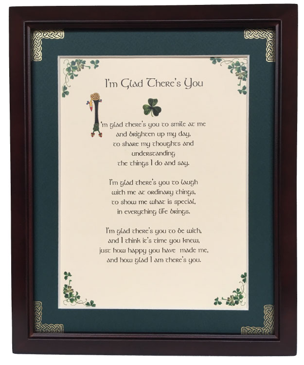 I’m glad there’s you to smile at me and brighten up my day, to share my thoughts and understand the things I do and say. I’m glad there’s you to laugh with me at ordinary things, to show me what is special, in everything life brings. I’m glad there’s you to be with, and I think it’s time you knew, just how happy you have made me, and how glad I am there’s you.