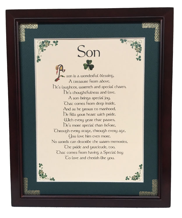 A son is a wonderful blessing, A treasure from above. He’s laughter, warmth and special charm, He’s thoughtfulness and love. A son brings special joy, That comes from deep inside, And as he grows to manhood, He fills your heart with pride. With every year that passes, He’s more special than before, Through every stage, through every age, You love him even more. No words can describe the warm memories, The pride and gratitude, too, That comes from having a Special boy. To love and cherish like you.
