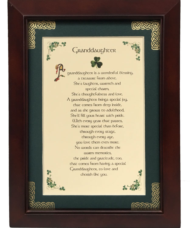 A granddaughter is a wonderful blessing, a treasure from above. She's laughter, warmth and special charm, She's thoughtfulness and love. A granddaughter brings special joy, that comes from deep inside, and as she grows to adulthood, She'll fill your heart with pride. With every year that passes, She's more special than before, through every stage, through every age, you love them even more. No words can describe the warm memories, the pride and gratitude, too, that comes from having a special Granddaughter, to love and cherish like you.