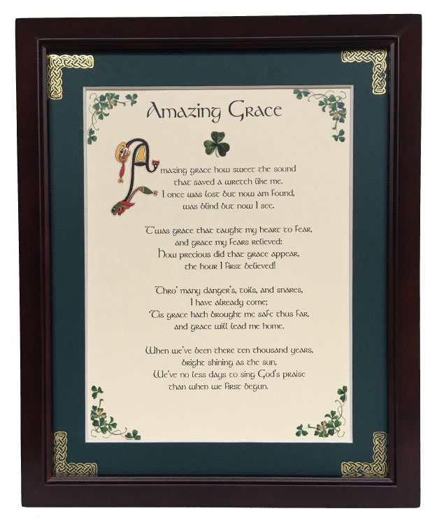 Amazing grace how sweet the sound that saved a wretch like me. I once was lost but now am found, was blind but now I see. T’was grace that taught my heart to fear, and grace my fears relieved: How precious did that grace appear, the hour I first believed! Thro’ many danger’s, toils, and snares, I have already come; ‘Tis grace hath brought me safe thus far, and grace will lead me home. When we’ve been there ten thousand years, bright shining as the sun, We’ve no less days to sing God’s praise than when we first begun.
